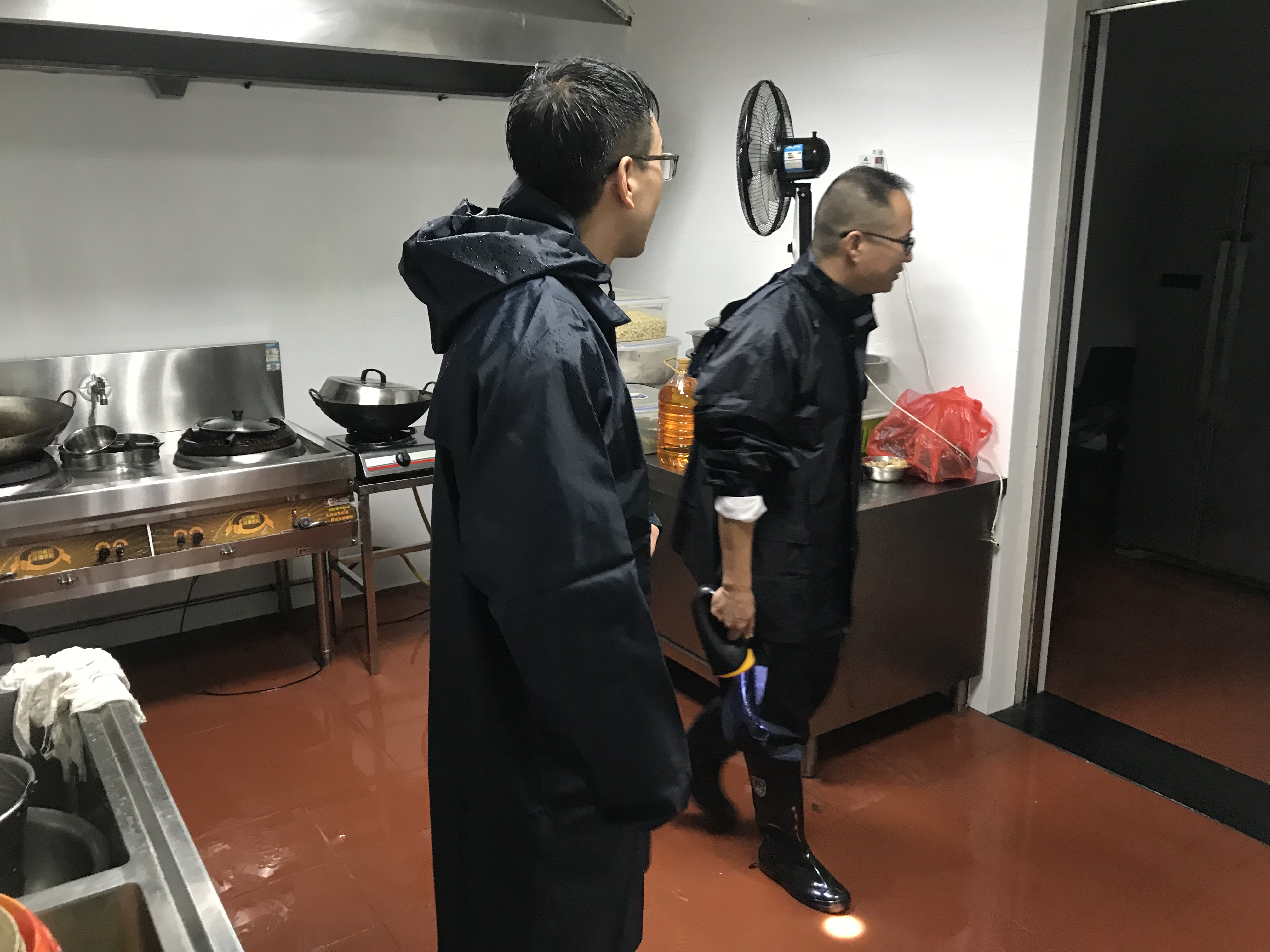 凌晨2點(diǎn)10分,水位猛漲至70厘米,考慮到人員安全,孫明偉立即組織人員叫醒在寢室休息的員工,短短5分鐘內(nèi),將大家全部安全撤離到辦公樓。行政人員紛紛將寢室讓給第二天早上上崗的同事,自己卻整宿未睡,時刻關(guān)注水位上漲情況,直到天亮潮水退下,大家才在自己辦公室凳子上、會議室椅子上稍作休息。