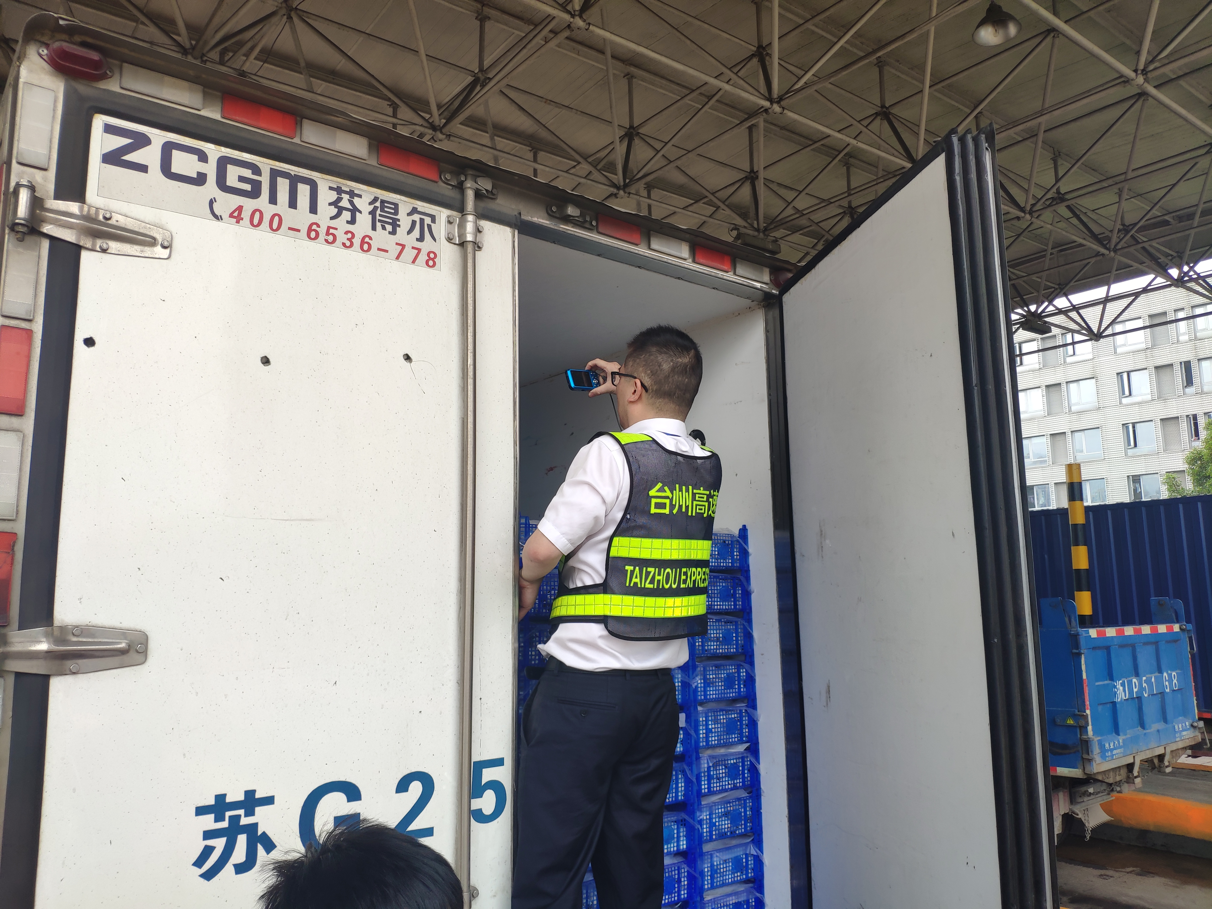 嚴把檢查關 違規綠農需繳費 天氣逐漸變熱,正是水果、龍蝦上市的旺季,收費站內運載的綠通車輛也相繼增多。 近日,一輛小型貨車在臺州收費所出口時,司機說車上裝載的都是龍蝦要求免費放行。然而在檢查過程中,工作人員發現該車運載的龍蝦箱數較少,不足車廂容積的一半,隨即告知司機重量不足需要繳費。司機堅持重量足夠,并去駕駛室里掏出行駛證要求免費放行,經核算該車并未達到行駛證上核載質量的80%且空間嚴重不足,經過耐心解釋,司機還是在罵罵咧咧中繳費駛離收費站。