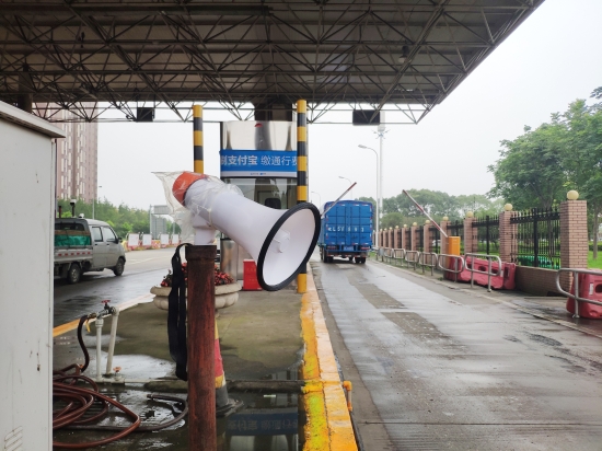 圖為入口處放置的語(yǔ)音警報(bào)小喇叭 在嚴(yán)把入口關(guān)中,該所要求入口必須有人員在崗,履行“一崗雙職”的重任,時(shí)刻關(guān)注入口情況,及時(shí)發(fā)現(xiàn)并勸阻違規(guī)車輛和人員的進(jìn)入。此外,入口顯眼處懸掛“請(qǐng)珍愛生命,禁止行人和非機(jī)動(dòng)車上高速”的警示標(biāo)語(yǔ)。入口處增添放置的管控小助手---語(yǔ)音警報(bào)器,循環(huán)播放普通話和方言警示標(biāo)語(yǔ):“行人、自行車、摩托車禁止上高速公路”。入口安全島頭和邊溝處放置水碼,防止行人、摩托車、電動(dòng)車和自行車從邊溝處和超寬車道進(jìn)入高速。而由維養(yǎng)中心人員在入口高處安裝的攝像裝置,只要行人、自行車等非機(jī)動(dòng)車輛出現(xiàn)在攝像范圍內(nèi),就會(huì)立刻傳來(lái)“警戒區(qū)域,請(qǐng)盡快離開”的持續(xù)性警報(bào)聲。在人員的管控和設(shè)備的警示下,收費(fèi)所入口安全不斷地提升。
