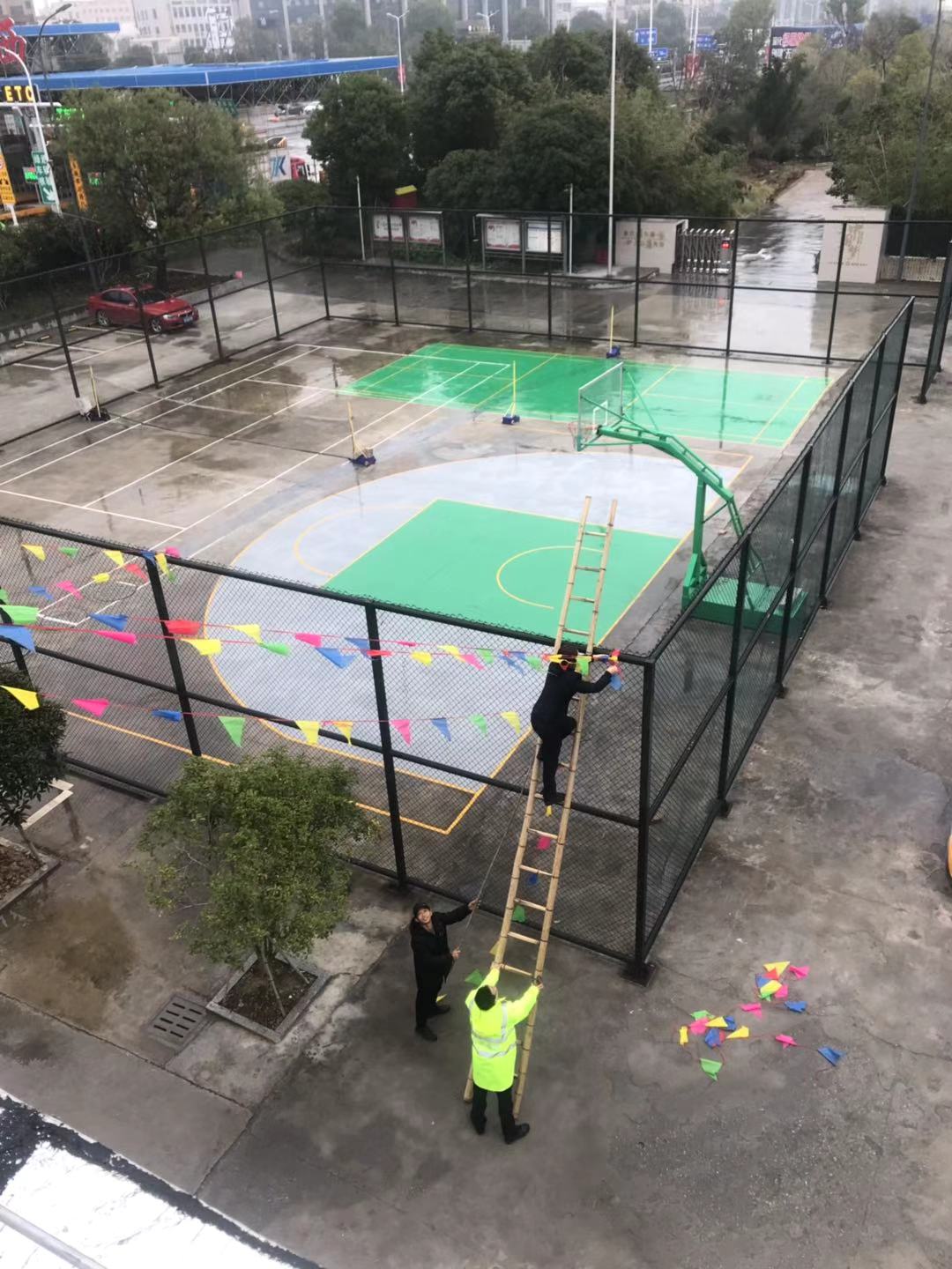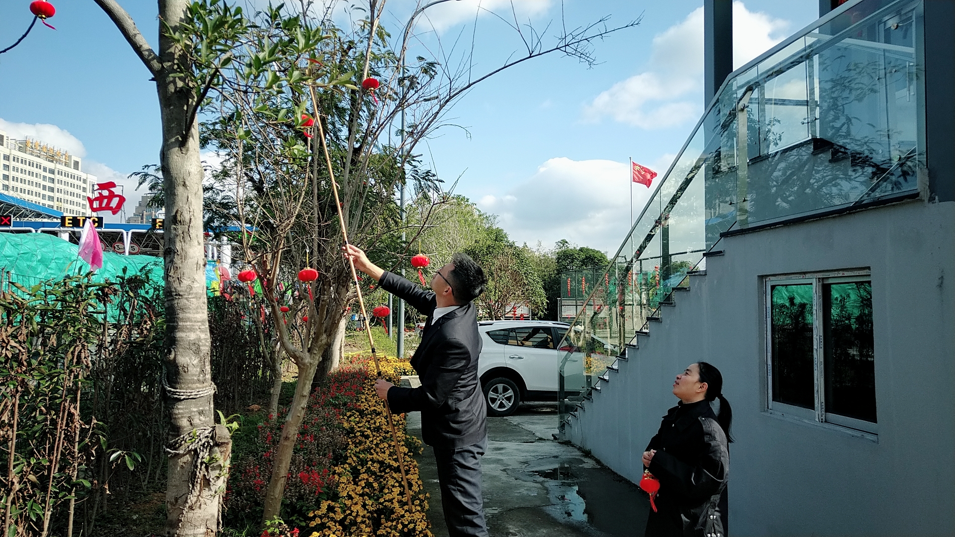 圖為工作人員共同裝扮收費所 此次活動,溫嶺西收費所本著大氣、熱烈、節儉的原則,在食堂、辦公樓、操場等區域掛上燈籠、拉上彩旗、貼上福字和對聯,在收費內廣場護欄處插上彩旗,有了這些裝扮,整個站所處處洋溢著喜氣洋洋、新穎美觀的節日氛圍。此外,員工們還自發在站所打掃衛生清理垃圾,重點對辦公樓、宿舍區及收費崗亭和內外廣場等區域的環境衛生進行全方位清掃。各班組齊心協力共同打掃,為春節掃塵。經過大家的努力,整個站區呈現出整潔優美的工作環境,向過往司乘充分展示溫嶺西收費所的良好精神風貌。