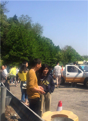 見狀,巡邏車馬上開啟預(yù)警模式,指揮大客車緩慢駛?cè)氡睆V場。隊(duì)長李新波詢問原因得知,浙J**123是椒江開往楠溪江的旅游包車,途中發(fā)動機(jī)故障,失去動力,車子開不了,現(xiàn)正在聯(lián)系公司,讓公司派車。但車子停在應(yīng)急車道,行人肆意穿越隔離帶很危險(xiǎn),高速公路車多速度快,隨時可能發(fā)生意外。對此,執(zhí)勤隊(duì)員當(dāng)即帶領(lǐng)乘客轉(zhuǎn)移安全地帶等待,告知他們在高速公路上不得隨意穿行。