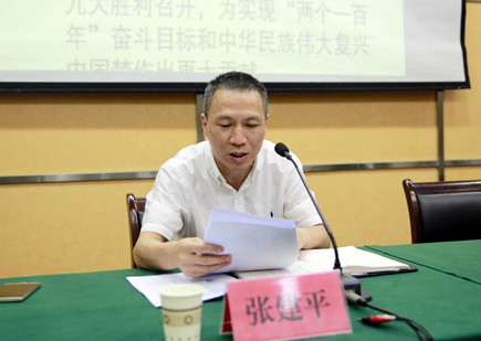 圖為公司黨委副書記、總經(jīng)理張建平傳達(dá)有關(guān)會議精神