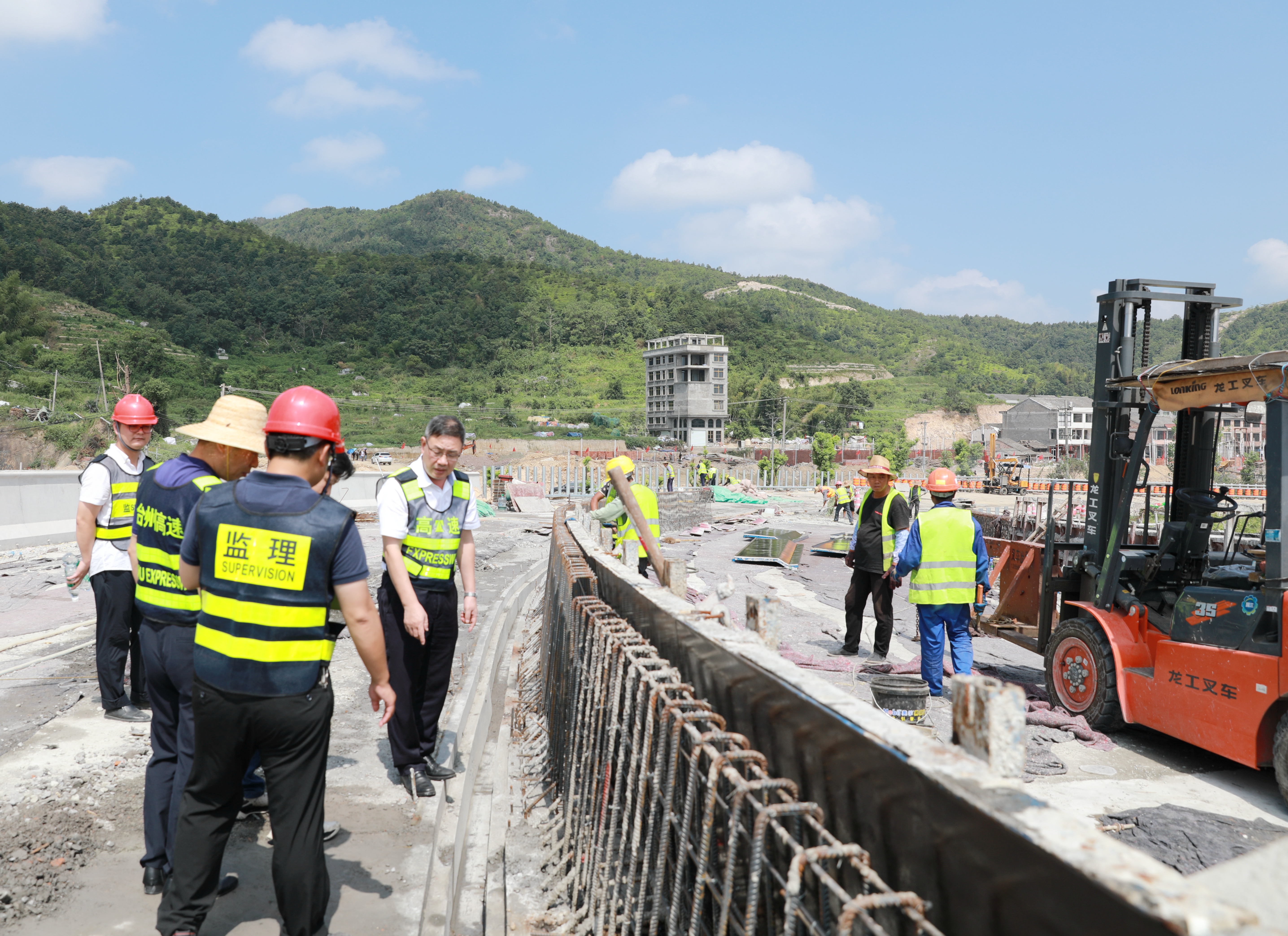 上午,臺州高速集團黨委書記、董事長、總經理陳文波,公司黨委委員、總工程師江輝,以及工程部相關人員一起來到公司所轄路段,檢查施工進展情況。
