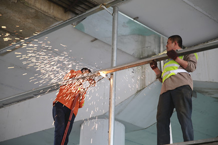 圖為工人在進行切割作業
