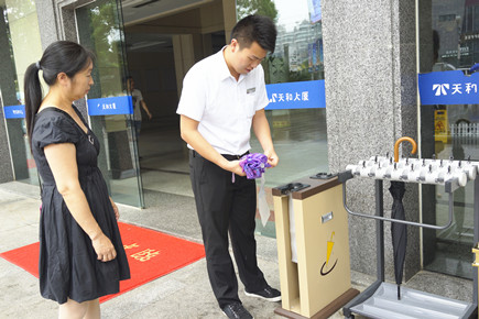 圖為物業(yè)公司工作人員幫助來客折傘 為提高物業(yè)管理質量,營造安全、舒心的大樓環(huán)境,前段時間,辦公室根據(jù)大樓實際情況和業(yè)主需求,精心制定更換物業(yè)方案,擴大選擇物業(yè)公司至全省范圍,深入調(diào)查了解有選擇意向的物業(yè)公司,并通過現(xiàn)場考察以及經(jīng)由天和大廈業(yè)委會開會決定,最終敲定浙師大印象物業(yè)管理有限公司負責本大樓物業(yè)管理。 5月1日,該物業(yè)公司正式入駐大樓,開啟了新物業(yè)管理改革風潮,在服務質量、人員形象、崗位職責、保潔等方面進行了全面整改。對比原先的物業(yè)公司,他們不僅增加人員配置,還提高上崗人員形象、素質要求,整體改善大樓一些臟、亂的環(huán)境,設立服務中心前臺、統(tǒng)一規(guī)范業(yè)主廣告位、在大廳放置沙發(fā)以接待訪客等,尤其在大樓正門入口一側設立形象崗,同時根據(jù)大樓用戶需要,分別在大樓A、B幢放置快遞柜,方便用戶取用物品。為了大樓安全,該物業(yè)公司還摸底各樓層工作人員名單、聯(lián)系方式、具體辦公地點,以防陌生人員無故闖入大樓。 據(jù)該物業(yè)公司副總經(jīng)理霍正佩介紹,其公司要求形象崗上的工作人員要規(guī)范使用迎賓用語,同時服務中心前臺客服人員上班時間延長至晚8點,以更好地滿足部分業(yè)主需求。 在此期間,公司辦公室一直持續(xù)跟進物業(yè)交接、整改工作,共同完善物業(yè)管理,創(chuàng)造大樓新形象。在新物業(yè)入駐第二天,公司安保部便對安全生產(chǎn)工作情況進行了全面檢查,并提出整改建議。 陳林偉
