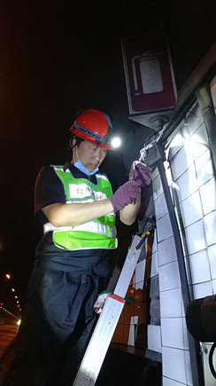 圖為工作人員安裝消防燈燈泡 大溪嶺—湖霧嶺隧道全長(zhǎng)4116米,為保障隧道內(nèi)行車安全、暢通、舒適,定期組織安排清洗隧道兩壁墻體、邊溝,檢修內(nèi)部各項(xiàng)機(jī)電設(shè)施成了維養(yǎng)中心每季必不可少的工作之一。而每次清洗檢修必將涉及封道,為最大程度減少因封道對(duì)社會(huì)造成的負(fù)面影響,中心工作人員早在一周前就對(duì)隧道內(nèi)各項(xiàng)損壞機(jī)電設(shè)備進(jìn)行摸底統(tǒng)計(jì),以便合理制定維修方案和安排施工人員。 12號(hào)早上7點(diǎn),隨著封道工作就緒,兩組清洗隊(duì)伍分別從隧道中部開始向兩頭清洗,六組專業(yè)燈具維修人員站在貨車腳手架上由北往南逐個(gè)推進(jìn),發(fā)現(xiàn)一盞修復(fù)一盞,或更換燈管、或更換觸發(fā)器、或更換鎮(zhèn)流器,對(duì)于一些同時(shí)有多個(gè)配件壞死或腐蝕嚴(yán)重的燈具就直接采取整體更換措施,大大提高了工作效率。而中心工作人員除了現(xiàn)場(chǎng)全程協(xié)調(diào)管理以外,還負(fù)責(zé)修復(fù)隧道兩壁逃生標(biāo)志及報(bào)警電話等多個(gè)指示牌。按照之前制定的計(jì)劃,六人兵分兩組由隧道兩頭分別向中間修復(fù),這樣既能與其他工作同時(shí)進(jìn)行又不造成相互干擾。另外一人則配合隧道所一起在登高車協(xié)助下,對(duì)洞內(nèi)各類攝像頭進(jìn)行逐個(gè)清理,全場(chǎng)人員各司其職,各盡其責(zé),現(xiàn)場(chǎng)一派忙碌的景象。 4公里多長(zhǎng)的隧道,由于流動(dòng)性差,洞內(nèi)空氣質(zhì)量比霧霾嚴(yán)重?cái)?shù)倍,僅一只口罩根本凈化不了廢氣,但由于時(shí)間緊,任務(wù)重,中心隊(duì)員和施工人員顧不上惡劣的環(huán)境,努力和時(shí)間賽跑,兩日下來(lái)共修復(fù)(清理)損壞燈具100余套,各類標(biāo)志指示牌40余塊,攝像頭30余個(gè),恢復(fù)了隧道內(nèi)各項(xiàng)機(jī)電設(shè)施的正常運(yùn)行,排除一切安全隱患,有效保證了隧道安全暢通。 項(xiàng)寅曉