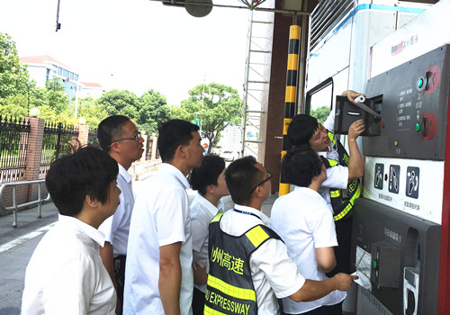 上圖為實踐培訓現場 此次安裝,臺州南和臨海南兩個收費所皆是初次接觸自動發卡機,對發卡機運作流程和使用操作都較為陌生,但兩所未雨綢繆,提前組織發卡機操作流程學習和培訓。其中臺州南收費所召集所有班組長及行政人員赴臺州收費所“取經”,虛心向他們學習發卡機卡票安裝和使用、常見故障排除和恢復方法。臺州收費所不僅向他們仔細傳授了卡機裝卡、裝票詳細步驟及技巧,還將他們近一年運行下來的一些排故經驗及特情處理毫無保留地進行分享,以幫助他們少走“彎路”,盡快上崗。臨海南收費所湯明漲,因為之前有使用過自動發卡機經驗,對卡機整套工作流程和使用操作都較為熟悉,就自告奮勇當起培訓師,帶領所內人員下到現場,親自演示發卡機操作步驟,詳細講解卡機內部各項功能鍵使用及說明,并一一解答大家提出的疑問。