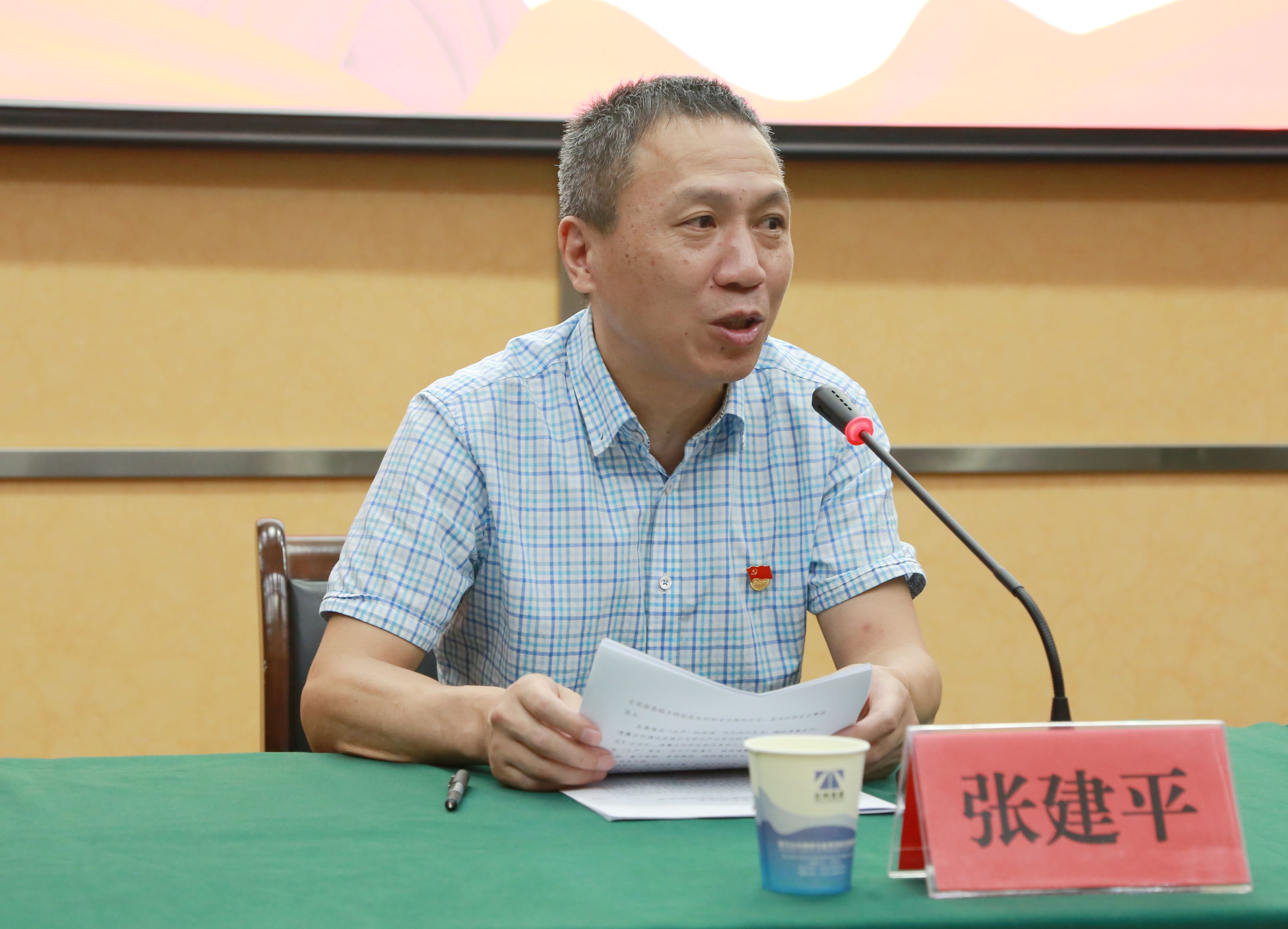 圖為集團黨委副書記張建平傳達文件精神 會上,集團黨委副書記張建平組織學習《陳奕君在市委五屆五次全體擴大會議上的報告》和《陳奕君在市委五屆五次全體擴大會議結束時的講話》精神,要求與會人員認真領會會議精神,深入學習貫徹習近平總書記對浙江工作重要指示精神,圍繞“八八戰略再深化、改革開放再出發”,研究深化“大學習大調研大抓落實”活動,在集團積極營造濃厚學習氛圍,迅速掀起學習貫徹熱潮,圍繞集團發展,以大抓落實的實效實績展現臺州高速的國企擔當,以思想大解放、行動大擔當推動臺州工作走在全省前列。