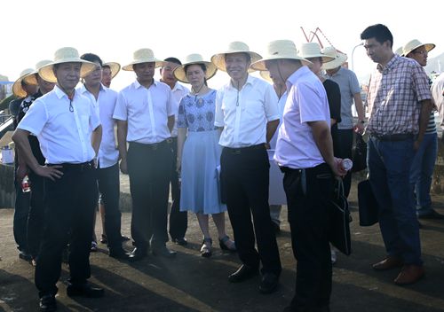 圖為臺州市副市長張加波實地察看海門港埠碼頭與新港區(qū)規(guī)劃建設用地 烈日下,調(diào)研組分別實地察看了海門港埠碼頭與新港區(qū)規(guī)劃建設用地。結(jié)合海門港埠總公司現(xiàn)狀用地區(qū)域圖及新碼頭選址方案圖展板,羅小將詳細介紹了港區(qū)碼頭目前區(qū)域現(xiàn)狀及新港區(qū)選址規(guī)劃設想方案,提出了港區(qū)剩余土地利用、建設項目規(guī)劃許可、新港區(qū)建設用地征遷安置等需要政府相關(guān)部門和椒江區(qū)政府大力支持的問題。