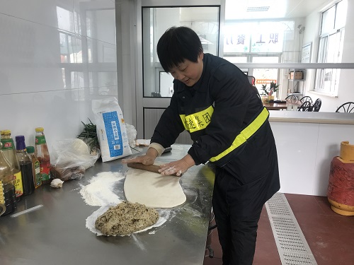 圖為溫嶺西收費所副所長也加入做飯隊伍