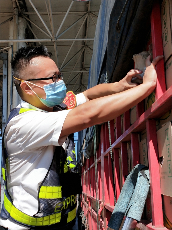 檢查綠農(nóng)車,遇到攀爬驗(yàn)貨時,車輛欄桿因高溫炙烤至少在四五十度以上,臺州南收費(fèi)所班長周冬子笑著說:“現(xiàn)在的車欄桿都‘辣手’了,腳底板也像踩了‘風(fēng)火輪’。” 話音還未落,只見他蹭蹭幾下,已然爬上貨車,一邊檢查貨物一邊用袖子蹭掉臉上豆大的汗珠,被曬得黝黑發(fā)紅的皮膚在烈日下格外醒目。綠農(nóng)車開走后,他顧不上滿身汗水,拿起了掃把開始打掃灑落在車道上的綠農(nóng)產(chǎn)品。因?yàn)樗溃@些灑落的農(nóng)產(chǎn)品,如不及時清理,在太陽曝曬后將會更加刺鼻,影響收費(fèi)站的形象。 熱浪滾滾,卷不走收費(fèi)員們工作的熱情;夏日炎炎,燃不盡收費(fèi)員們堅(jiān)守的意志。他們用執(zhí)著在高溫下書寫愛崗敬業(yè),用責(zé)任和擔(dān)當(dāng)保障著高速的平安暢通。 項(xiàng)丹穎